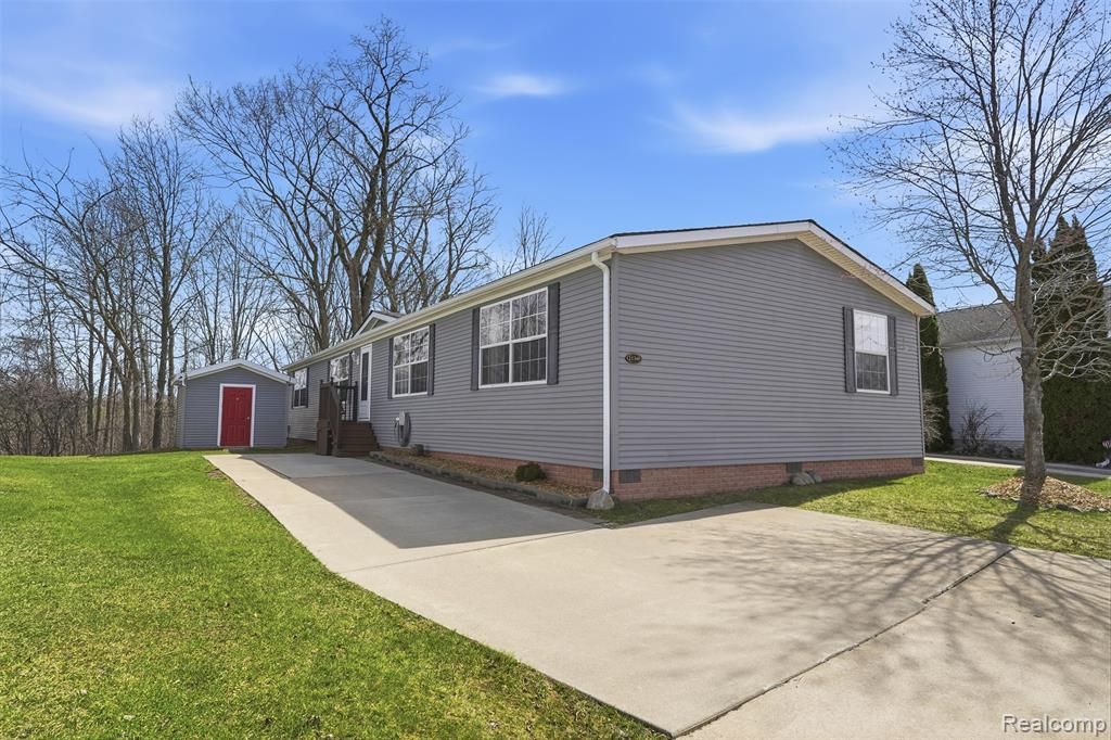 Beautiful 2005 four-bedroom, two full bath manufactured home offering over 2,100 square feet of living space in the highly desirable Woodland Ridge Manufactured Home Community. Situated on a premium lot backing to a wooded area, this home offers both privacy and peaceful views. The spacious layout features a large kitchen, formal dining room, breakfast area, and a welcoming family room with a cozy gas fireplace. The primary bedroom is a true retreat with a walk-in closet and a private ensuite complete with a soaking tub, separate shower, and double sinks. The additional bedrooms are generously sized and comfortable. Step outside to a large deck overlooking the wooded backdrop, perfect for relaxing or entertaining, along with a sizeable shed for extra storage. Major updates include a new roof (2026), hot water heater (2020), and air conditioner (2024). Located in the award-winning South Lyon School District, this home combines space, updates, and a prime location. Lot rent is $895 per month. There are no property taxes on the home. Community amenities include walking trails, pool, two dog parks, tennis courts, basketball courts, clubhouse, and playground. Pets are allowed. NOTE: Buyers must be approved by the community after an accepted offer. Manufactured home loans are accepted (contact listing agent for lender information). Agents, you do not need a special license to bring a buyer, only to list. BATAVI.