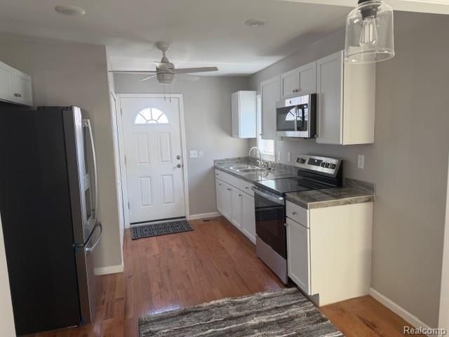 Totally remodeled and move in ready, this charming 2 bedroom, 1 bath home has been updated from top to bottom. Features include a new roof, siding, vinyl windows, updated kitchen with a gourmet feel, new sinks, faucets, flooring, carpet, fresh paint, and modern light fixtures throughout. Updated bathroom and a dedicated laundry room add to the functionality. Great curb appeal with a detached garage and a super clean, inviting feel. Immediate possession available. Hurry, this one will not last.