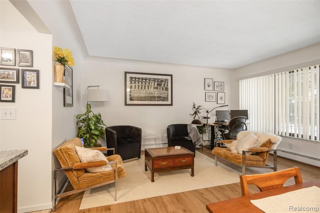 Completely remodeled and truly move-in ready, this freshly painted premium condo offers everything you need—and more. Own your own little piece of paradise in a quiet, friendly community with beautifully maintained grounds. An abundance of natural light fills the open layout, highlighting the stunning kitchen (remodeled 2021) featuring new cabinetry, granite countertops, and appliances. The kitchen opens seamlessly to the living room, which offers additional built-in cabinetry ideal for storage and entertaining, along with beautiful deluxe luxury plank flooring (installed in 2018). Natural hardwood floors are also located beneath the vinyl flooring. The flooring continues into the spacious bedroom, which boasts generous closet space and a wall A/C unit. The updated full bathroom includes dual shower heads and a bidet toilet for added comfort. Residents enjoy exceptional community amenities including an inground heated pool, BBQ area, community room, and inviting outdoor seating spaces. The on-site laundry room includes a private storage locker and common area. The low monthly association fee covers gas, water, sewer, trash, snow removal, and grounds maintenance. This unit also includes a dedicated covered carport space, plus ample guest parking. Conveniently located near Cass Lake Road, with close proximity to multiple lakes, and within walking distance to Meijer and a local farm market—this is condo living at its finest. There is a Senior Center to the West, almost next door. Serves lunch, and have activities, like Yoga, Tai Chi, woodworking, flight simulator. Mott High School is 1/2 mile East, which has a community fitness program, very low cost. Group fitness, yoga, water aerobics, weight room. Use of swimming pool during open hours. (2 cats allowed)